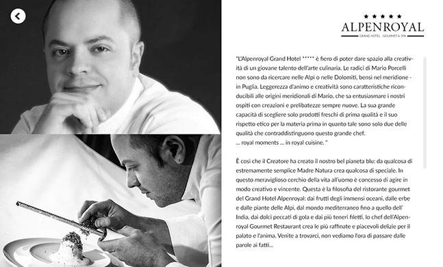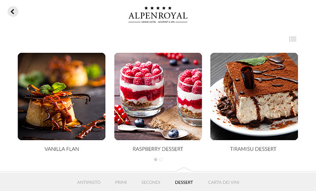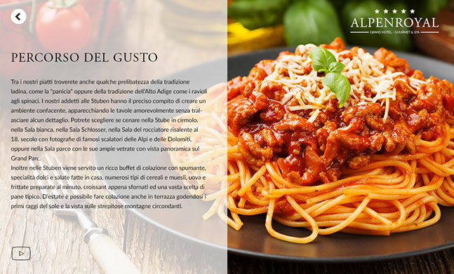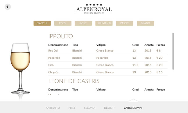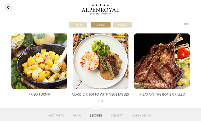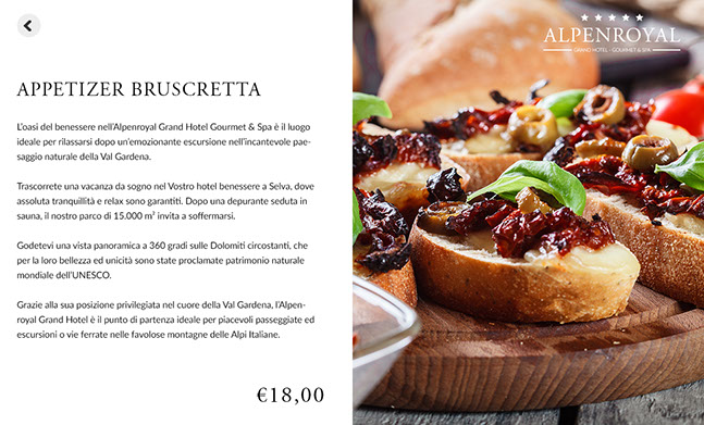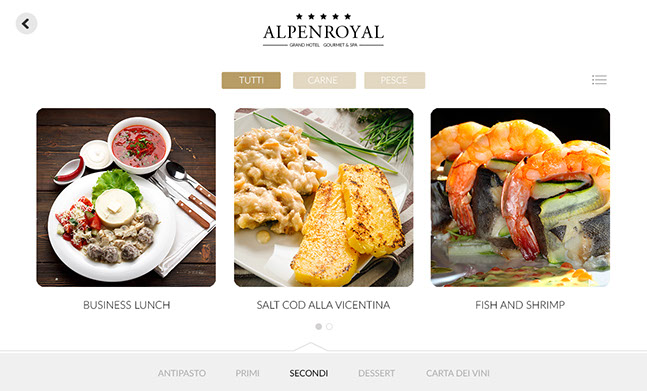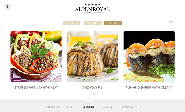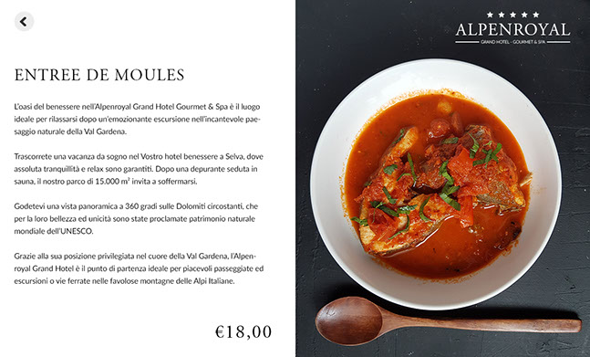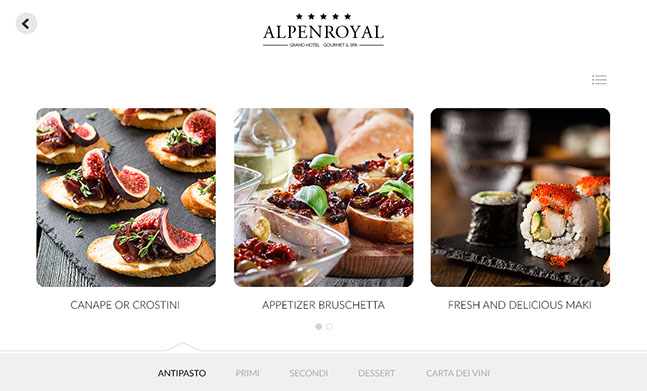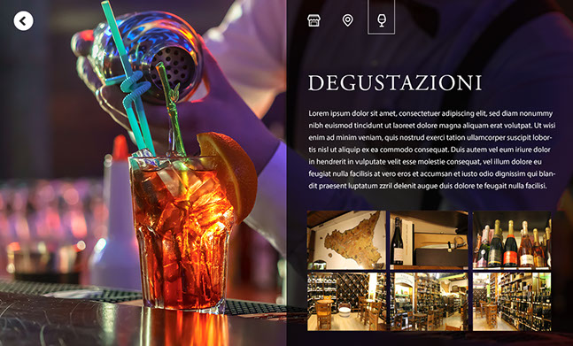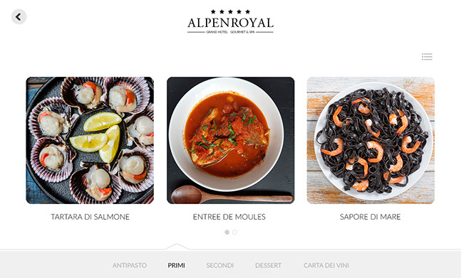 Il Menù digitale di ItaliaGustus entra nelle logiche tradizionali delle prestazioni commerciali e ne scardina alcune dinamiche rinnovandole. È un’applicazione elegante, smart, dinamica e multilingua, pensata per Enoteche, Bar, Ristoranti, Hotel, Spa. Di immediata navigazione può essere utilizzato in sostituzione ai classici cartacei. Una formula nuova e innovativa che rompe la monotonia. Una vetrina vivace, colorata, ricca di immagini, video e testi accattivanti che sono mostra di una storia: la tua storia, la tua azienda, i tuoi prodotti, i tuoi eventi. Un servizio rapido e sempre aggiornato che offre la possibilità ai tuoi clienti di vivere un’esperienza immersiva, unica e sempre diversa nel tuo locale!